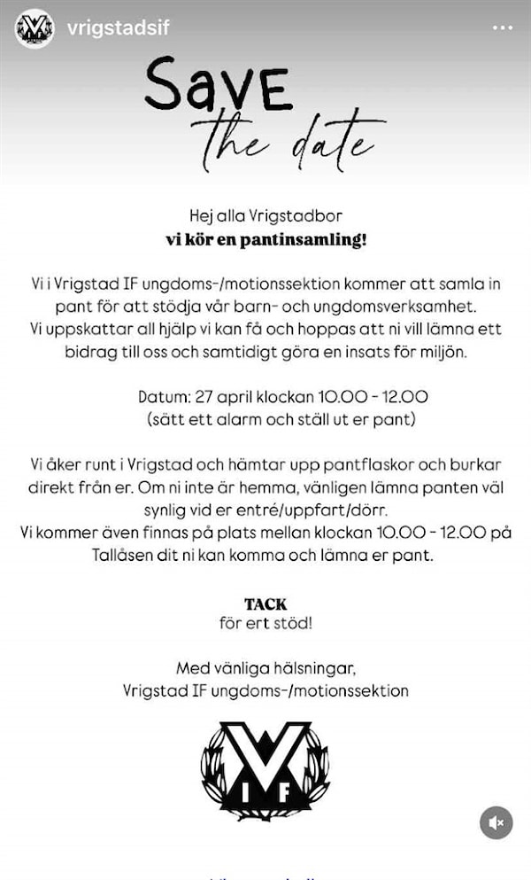 27 april samlar VIFs ungdom-motionsektion in pantburkar. All info på bilden.